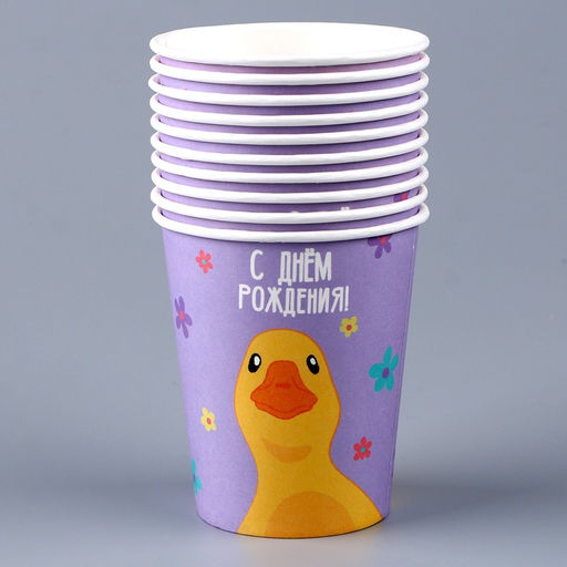 Цена за 10 шт. Стакан бумажный С днём рождения. Утка, 250 мл