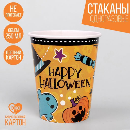 Стакан бумажный Happy Halloween, 250 мл, набор 6 шт