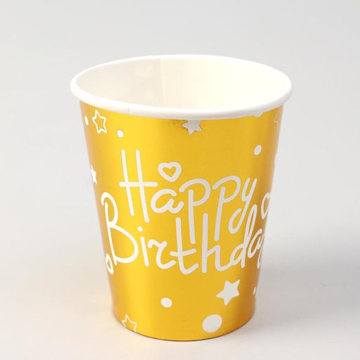 Стаканы бумажные С днём рождения, набор, 6 шт., цвет золото
