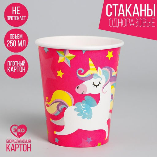 Цена за 10 шт. Стакан бумажный Единорог-малыш, 250 мл