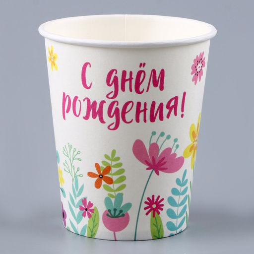 Цена за 10 шт. Стакан бумажный С днём рождения. Цветы, 250 мл