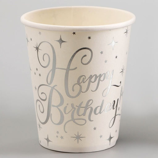 Стаканы бумажные С днём рождения с серебрянными звёздами, 6 шт.