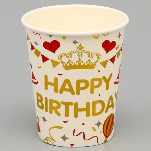 Стаканы бумажные С Днём рождения!, 6 шт, цвет белый