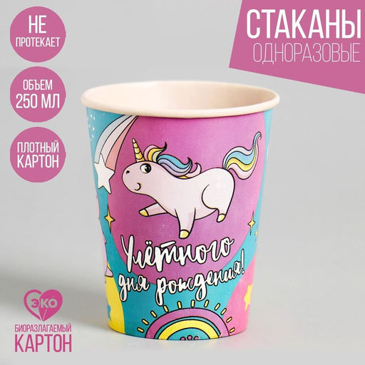 Стакан бумажный Улётного Дня Рождения, набор 6 шт, 250 см