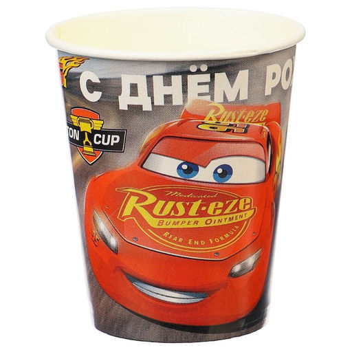 Цена за 10 шт. Стакан бумажный "С Днем Рождения!", 250 мл, Тачки