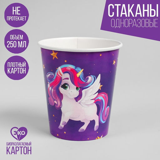 Цена за 10 шт. Стакан бумажный Волшебный единорог, 250 мл