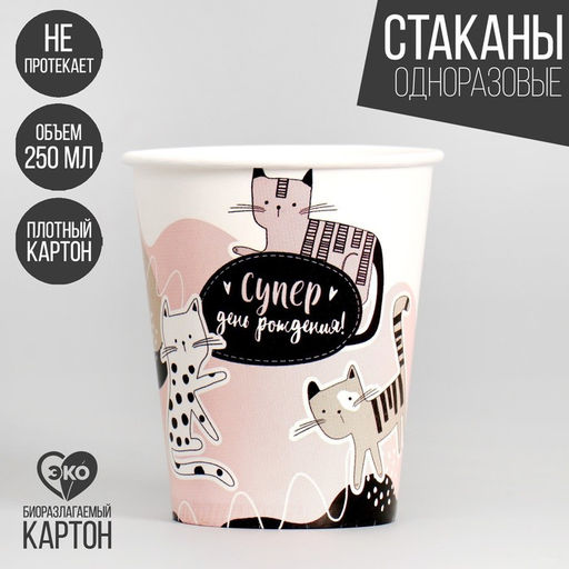Стакан бумажный Супер!, набор 6 шт, 250 мл