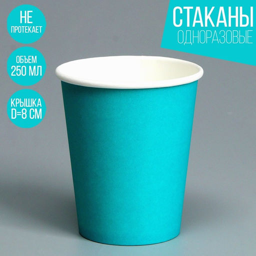 Цена за 50 шт. Стакан бумажный, однотонный, цвет бирюзовый, 250 мл, 50 шт