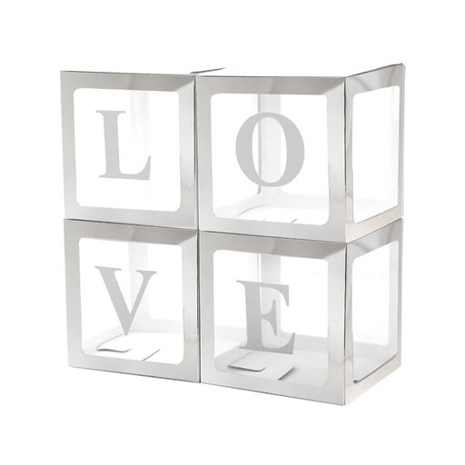 Набор коробок для воздушных шаров Love, серебро, 30*30*30 см, в упаковке 4 шт.