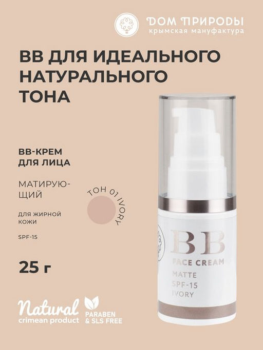 ВВ крем для лица Матирующий для жирной кожи 01 тон ivory