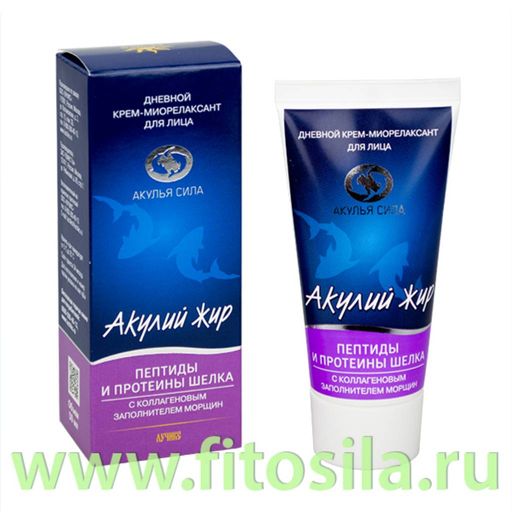 Акулий жир крем-миорелаксант дневной "Пептиды и протеины шелка" для лица, 50 мл, "Акулья сила"