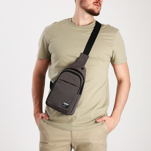 Сумка слинг мужская из текстиля, отверстие для наушников, цвет серый