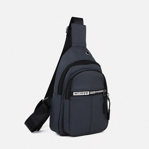 Сумка слинг мужская из текстиля, отверстие для наушников, цвет серый