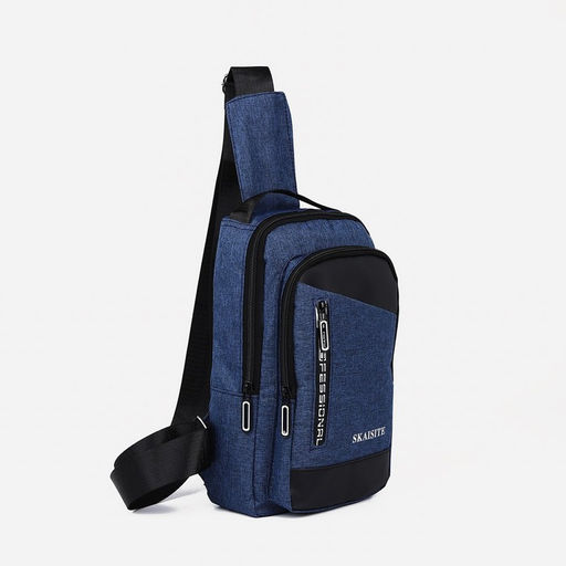 Сумка слинг мужская из текстиля, с USB, цвет синий