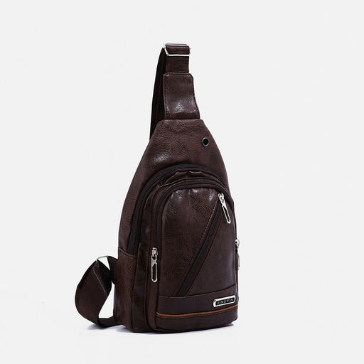 Сумка слинг мужская, искусственная кожа, отверстие для наушников, цвет коричневый