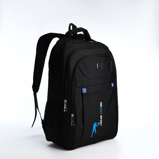 Рюкзак молодёжный из текстиля, 2 отдела на молнии, 3 кармана, цвет чёрный/синий