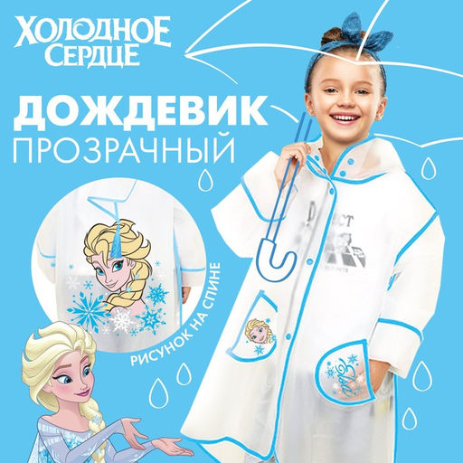 Дождевик детский, размер M, 100-110 см, Холодное сердце