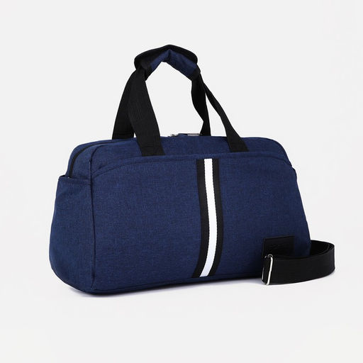 Сумка спортивная на молнии, 3 наружных кармана, длинный ремень, цвет синий