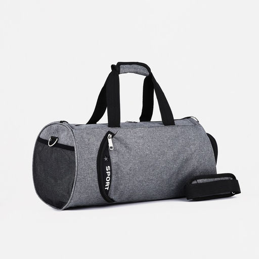 Сумка спортивная на молнии, отдел для обуви, длинный ремень, цвет серый