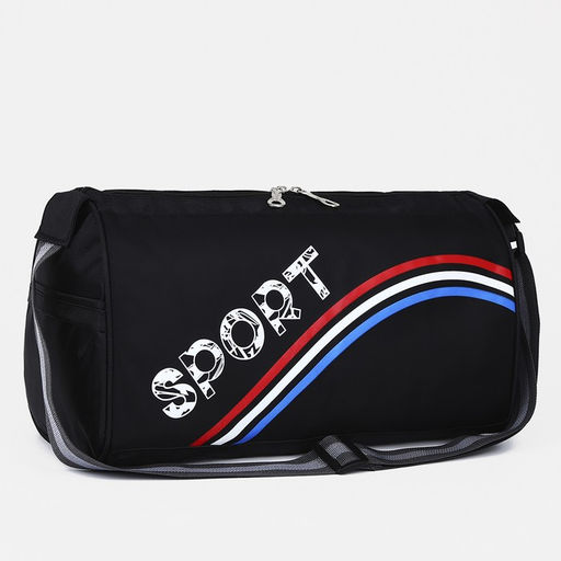 Сумка спортивная на молнии, длинный ремень, цвет чёрный/триколор