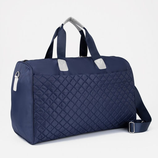 Сумка дорожная на молнии, наружный карман, длинный ремень, держатель для чемодана, цвет синий