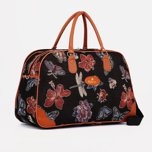 Сумка дорожная, 2 отдела на молниях, длинный ремень, цвет рыжий/разноцветный