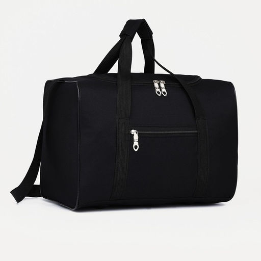Сумка дорожная на молнии, наружный карман, длинный ремень, цвет чёрный