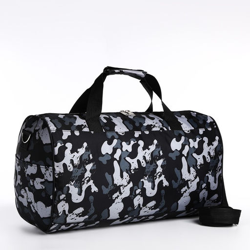Сумка дорожная на молнии, наружный карман, длинный ремень, цвет серый/чёрный