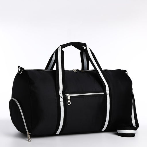 Сумка дорожная на молнии, наружный карман, отделение для обуви, длинный ремень, цвет чёрный