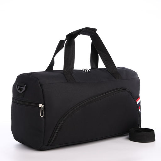 Сумка дорожная на молнии, 3 наружных кармана, длинный ремень, цвет чёрный