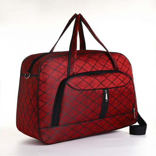 Сумка дорожная на молнии, наружный карман, длинный ремень, цвет бордовый