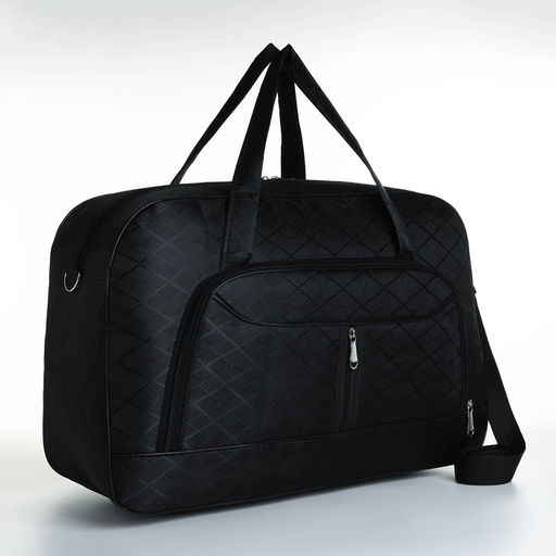 Сумка дорожная на молнии, наружный карман, длинный ремень, цвет чёрный
