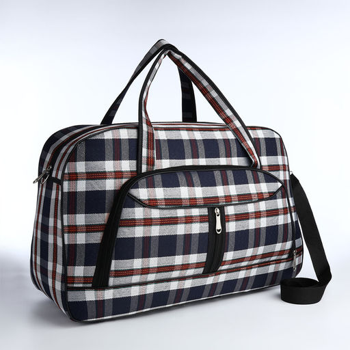 Сумка дорожная на молнии, наружный карман, длинный ремень, цвет синий/белый