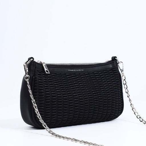 Сумка-багет на молнии, длинный ремень, цвет чёрный