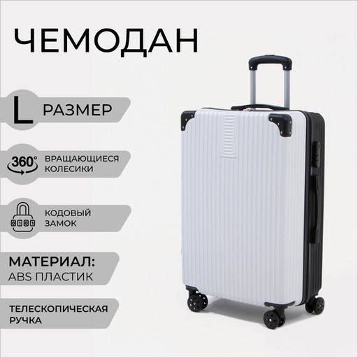 Чемодан большой 26", кодовый замок, цвет белый/чёрный