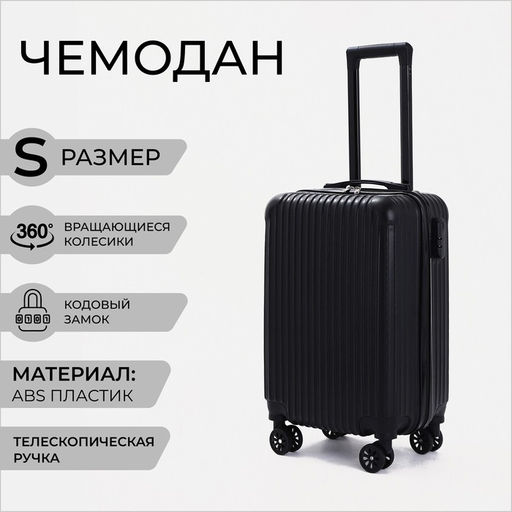 Чемодан малый 20", отдел на молнии, кодовый замок, цвет чёрный
