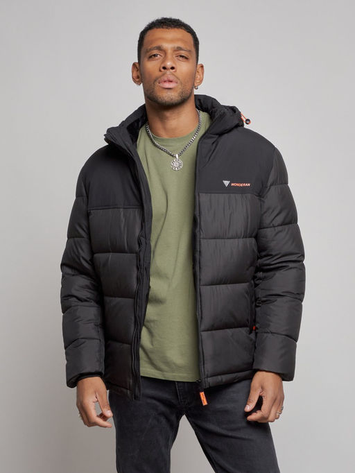 Куртка мужская зимняя с капюшоном спортивная великан черного цвета 8377Ch
