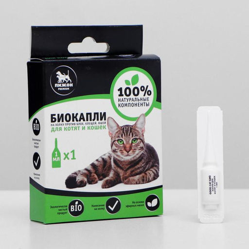 Био капли для животных от блох и клещей "ПИЖОН Premium" для котят и кошек, до 10 кг, 1х1мл