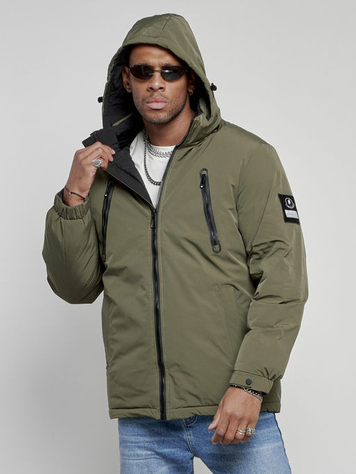 Куртка спортивная мужская зимняя с капюшоном цвета хаки 8360Kh
