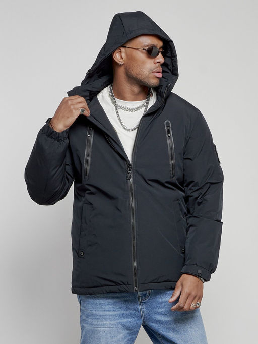 Куртка спортивная мужская зимняя с капюшоном темно-синего цвета 8360TS