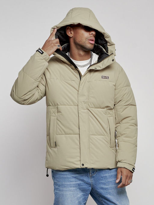 Куртка молодежная мужская зимняя с капюшоном светло-зеленого цвета 8356ZS