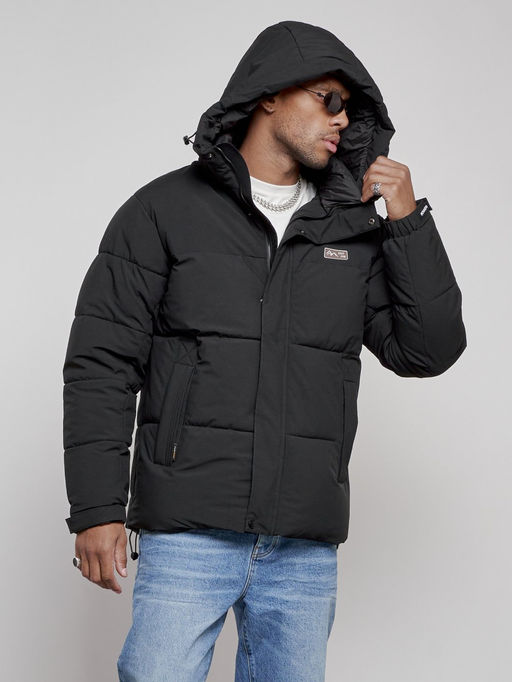 Куртка молодежная мужская зимняя с капюшоном черного цвета 8356Ch