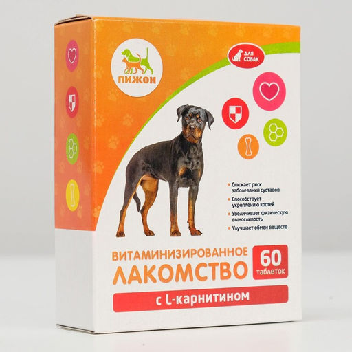 Лакомства "Пижон" для собак, с L-карнитином, 60 табл.