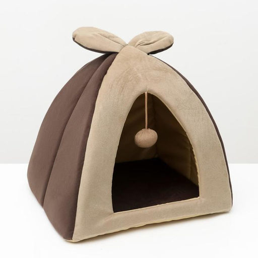 Домик-вигвам с ушками и шариком, 40 х 40 х 37 см, мебельная ткань, коричневый