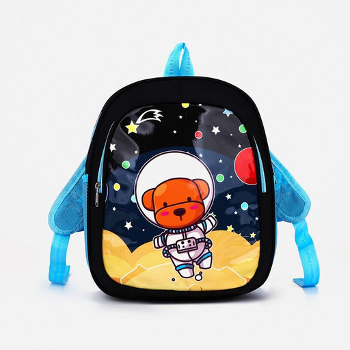 Рюкзак детский на молнии, 3 наружных кармана, цвет чёрный/голубой