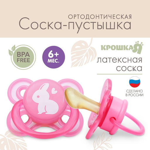 Соска - пустышка ортодонтическая, латекс, +6мес., Зайчик