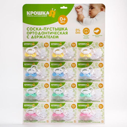 Пустышка ортодонтическая, с держателем, +0мес., на блистере, цвет МИКС