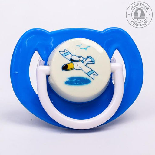 Соска-пустышка ортодонтическая, силикон, от 6 мес., с колпачком, Самолет, цвет голубой