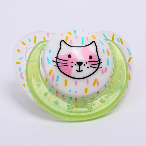 Соска-пустышка ортодонтическая, силикон, от 3 мес., Кошечка, цвет зеленый