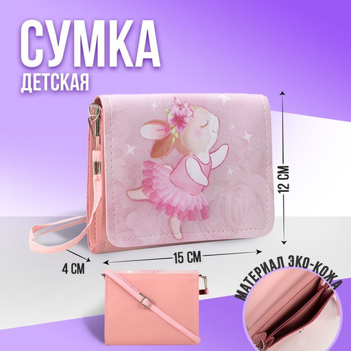 Сумка детская Зайка балерина, на клапане, цвет розовый, 15х4х12 см